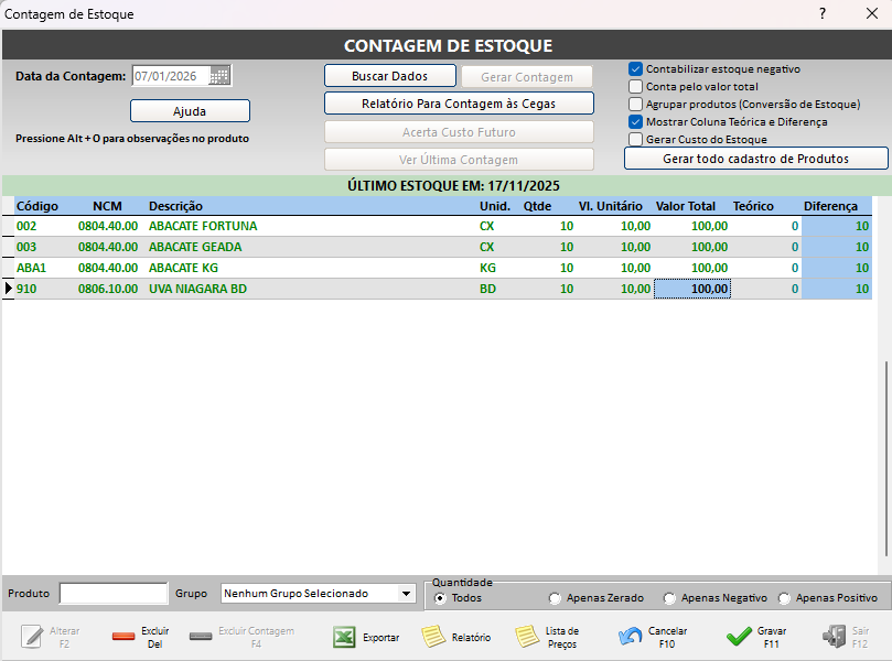 Essa sugestão pode ser ajustada manualmente, conforme a contagem física.