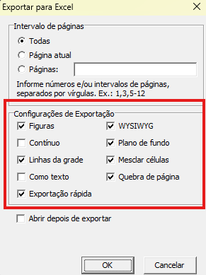 Há uma opção para exportar os dados dos relatórios para Excel sem as formatações dos relatórios.