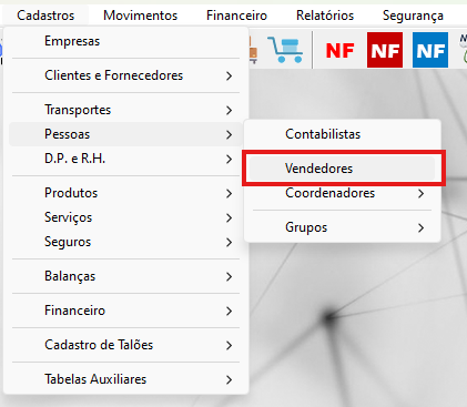 Cadastros > Pessoas > Vendedores