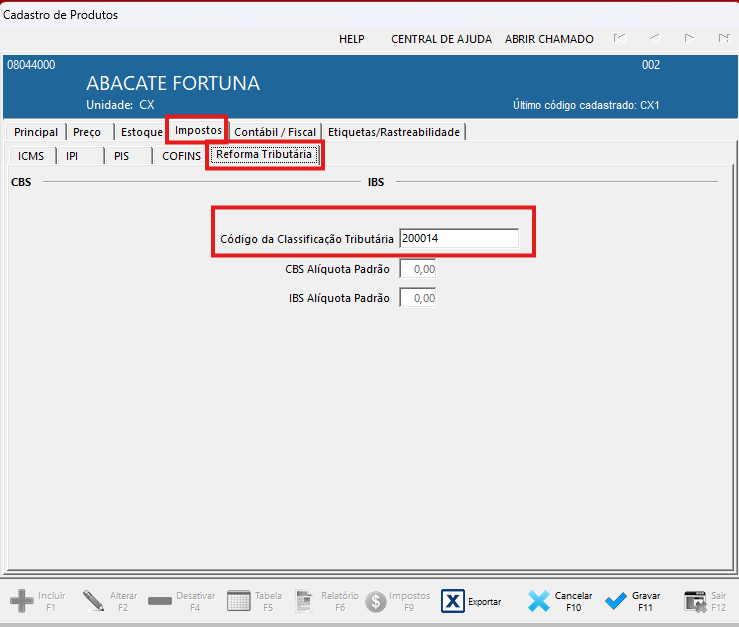 Cadastro do Produto – Classificação Tributária (Reforma Tributária)