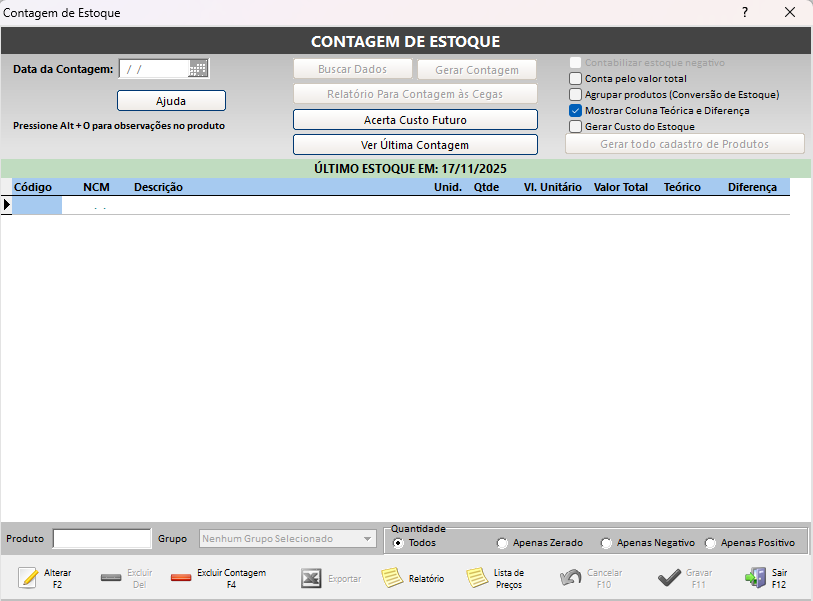 - ✅ Realizar contagens físicas periódicas (inventário / balanço)