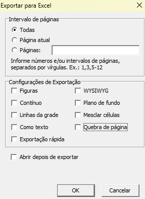 Há uma opção para exportar os dados dos relatórios para Excel sem as formatações dos relatórios.
