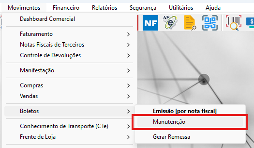 Como acessar a Manutenção de Boletos