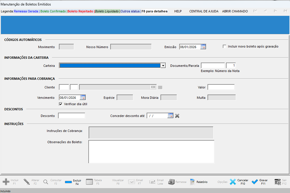 Para incluir um novo boleto manualmente: